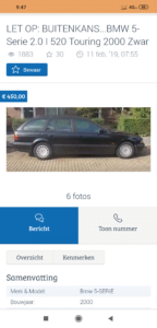 Gisteravond verscheen er alweer voor de zoveelste keer een advertentie op Marktplaats en onze René ziet hem ook gelijk. Het is een gouden kans, maar hij twijfelt even doordat we met hadden gekozen om een paar maanden te wachten. Maar vrijdagochtend staat de advertentie er nog en René licht ons ook al grappend in: “Is dit niets?” We zijn gelijk enthousiast, het ging om een perfect onderhouden BMW 520i Touring voor maar €450. Bijna te mooi om waar te zijn.