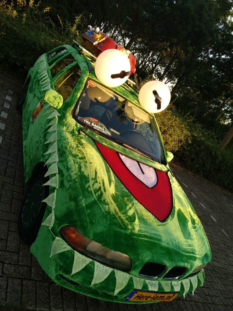 Vandaag kregen we wel een heel mooie foto van onze auto toegestuurd. Genomen terwijl de ondergaande zon de ogen van onze Kermit verlicht. (foto: Io)