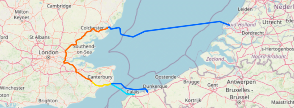 Tenslotte kan je er nog voor kiezen om niet helemaal naar Frankrijk af te reizen, maar al in Nederland op de boot te stappen vanuit Hoek van Holland naar Harwich. Dan hoef je een stuk minder tot de boot te rijden, maar je zit wel 5½ uur op de boot. En het stuk in Engeland neemt toe van 36 km naar ruim 180km. Al met al ben je dan je toch langer onderweg en het is ook nog eens een stuk duurder. Zelfs als je de benzine meerekent.